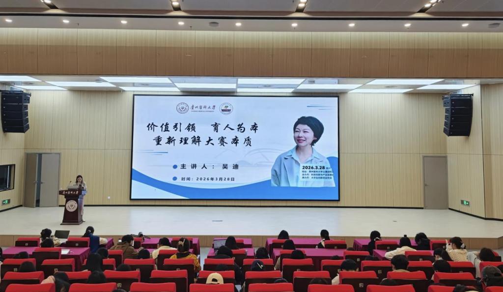 为破解“中国国际大学生创新大赛”备赛痛点,深化我校师生对双创赛事育人本质的理解,推动项目价值与国家战略、地方需求深度融合,3月28日,我校科技创新与产业发展处联合校团委特邀四川大学教授,创新创业工作领导小组办公室专职副主任、国家级创新创业学院专职副院长吴迪,在贵州医科大学云漫湖校区道德讲堂作“价值引领 育人为本——重新理解大赛本质”主题讲座,吸引全校近500名师生齐聚现场。