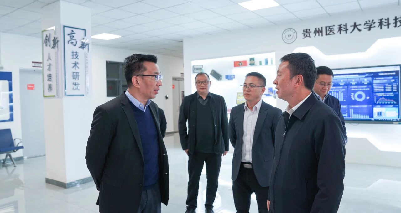 白震一行实地察看大学科技园建设与运营情况,详细了解园区入驻企业、科技成果转化、创新创业教育、科技企业孵化等工作进展。白震对我校大学科技园建设、科技成果转化及创新创业工作取得的成绩给予充分肯定。他强调,贵州医科大学要立足医学特色与学科优势,持续深化科技园内涵建设,完善成果转化链条,孵化更多优质科技企业,为贵州教育事业和大健康产业发展贡献更大力量。
