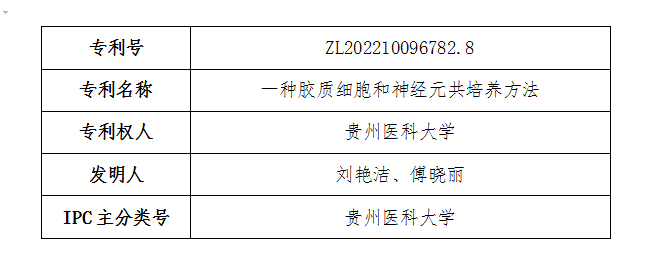 根据《国家知识产权局关于评选第二十六届中国专利奖的通知》要求,2025年11月27日,经专利发明团队申报、管理部门形式审查等程序,我校拟推荐以刘艳洁、傅晓丽为专利发明人,贵州医科大学为专利权属人的“一种胶质细胞和神经元共培养方法”(专利号:ZL202210096782.8)专利参与本次中国专利奖评选。